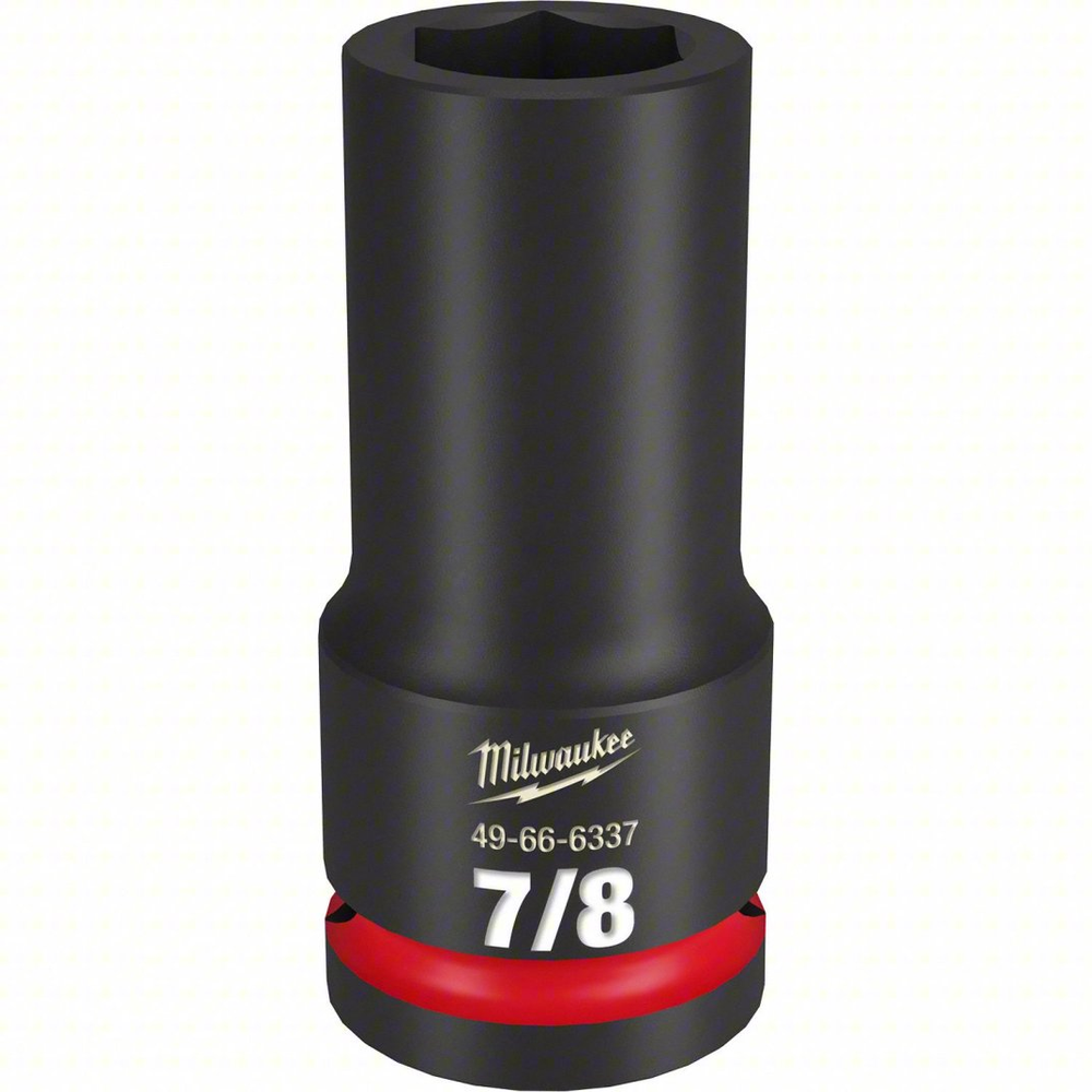 Engineered for extreme durability and high-torque applications, the Milwaukee SHOCKWAVE Impact Duty 3/4' Drive 7/8' Deep 6 Point Socket is built to withstand the rigors of heavy-duty use. Constructed from high-strength forged steel, this socket offers optimized performance and longevity. Its non-slip hex geometry prevents fastener rounding, ensuring a secure grip and reducing the risk of damage to fasteners. The stamped and ink-filled markings provide clear, long-lasting size identification, even after extensive jobsite wear, enhancing workflow efficiency. Designed for optimal use with impact wrenches and adapters, this socket is a reliable addition to any professional toolkit.