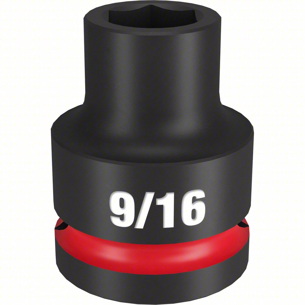 The Milwaukee SHOCKWAVE Impact Duty 3/4' Drive 9/16' Standard 6 Point Socket is engineered for extreme durability and performance in high-torque applications. Featuring bold, long-lasting, and ink-filled size markings for easy identification, this socket ensures you select the correct size every time. Constructed from high-strength forged steel, it's built to withstand heavy-duty use, while the non-slip hex geometry prevents fastener rounding. The dual-hole design and ring groove facilitate easy attachment and removal, making it a reliable tool for demanding tasks. All SHOCKWAVE Impact Duty sockets come with a Lifetime Guarantee and meet ASME industry standards.