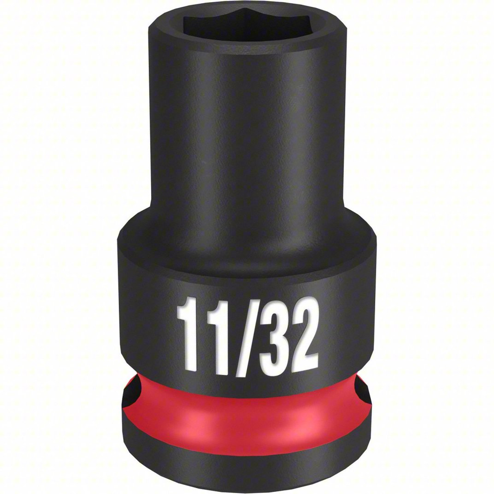 The Milwaukee SHOCKWAVE Impact Duty 3/8' Drive 11/32' Standard 6 Point Socket is engineered for extreme impact durability in high torque applications. It features the boldest, longest-lasting stamped and ink-filled markings for easy and accurate socket selection. Constructed from high-strength forged steel, this socket is designed for optimized performance in heavy-duty tasks, while its non-slip hex geometry helps to prevent fastener rounding. The dual-hole design and ring groove make for easy attachment and removal.
