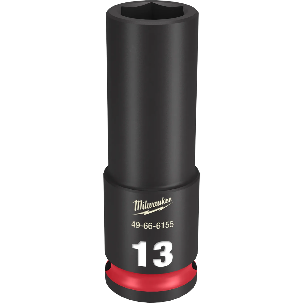Engineered for the most demanding high-torque applications, the Milwaukee SHOCKWAVE Impact Duty 3/8' Drive 13MM Deep 6 Point Socket is built to withstand extreme vibrations and deliver exceptional durability. Its high-strength forged steel construction ensures it can handle heavy-duty tasks where standard sockets might fail. The non-slip hex geometry is designed to grip fasteners at their flats, significantly reducing the risk of rounding, while bold, ink-filled markings ensure easy size identification throughout its long service life. Maximize your return on investment with a socket designed to eliminate downtime caused by fastener rounding and tool failure.