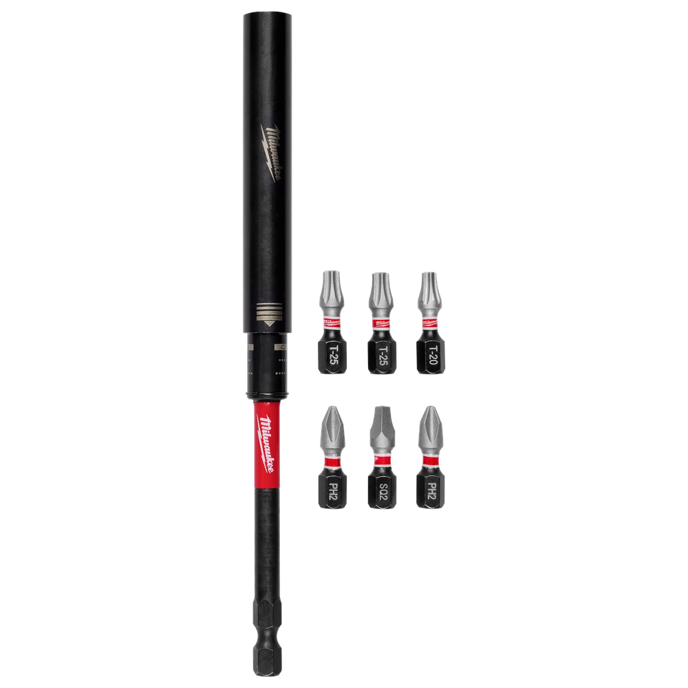 The Milwaukee 48-32-4518 SHOCKWAVE Impact Duty Magnetic Drive Guide Set is engineered for extreme durability and up to 30x the life of standard drive guides. Featuring an optimized SHOCKZONE geometry, these guides effectively absorb peak torque to prevent breakage during high-impact applications. The retractable stainless steel sleeve ensures superior fastener stability by creating a rigid channel that keeps screws centered, while laser-etched depth gauges allow for precise fastener control. Forged from Custom Alloy76 Steel, this professional-grade set provides the reliability and efficiency needed for demanding jobsite tasks.
