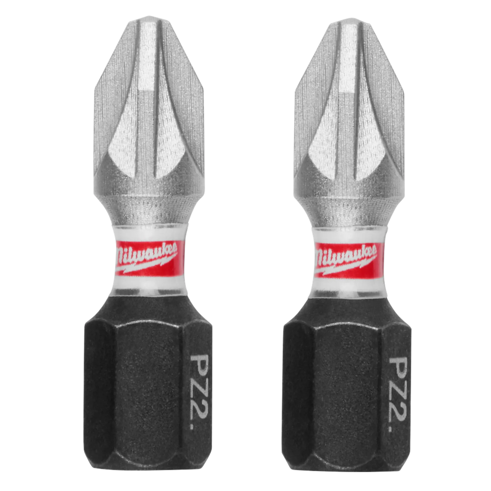 The Milwaukee SHOCKWAVE Impact Duty 1' Pozidriv #2 Insert Bits are engineered to be the most durable and best-fitting driver bits available. Featuring a Wear Guard Tip, these bits provide increased wear resistance to maintain a precise fit throughout their lifespan. Optimized SHOCKZONE geometry in each bit absorbs peak torque and prevents breakage, ensuring reliability in the most demanding high-torque applications.