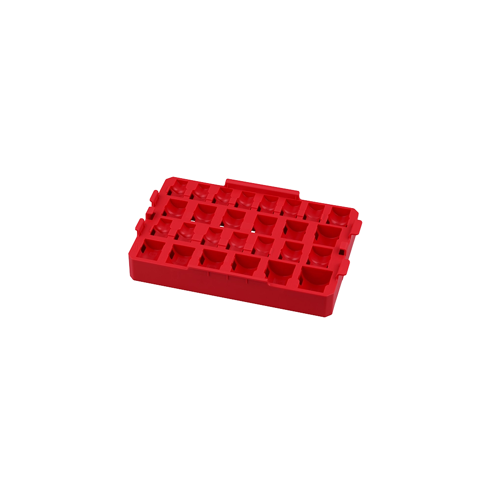 Organize your tools with the Milwaukee 49-66-6834 SHOCKWAVE Impact Duty Socket Tray. This precision-molded tray is designed to hold up to 27 of your 1/2' drive SAE and Metric sockets, ensuring each has its own dedicated space and eliminating clutter. It seamlessly integrates with the Milwaukee PACKOUT modular storage system, making it easy to transport and access your tools. The red color-coding and clear size labels allow for quick identification, even in low-light conditions, saving you time and increasing productivity on the job.