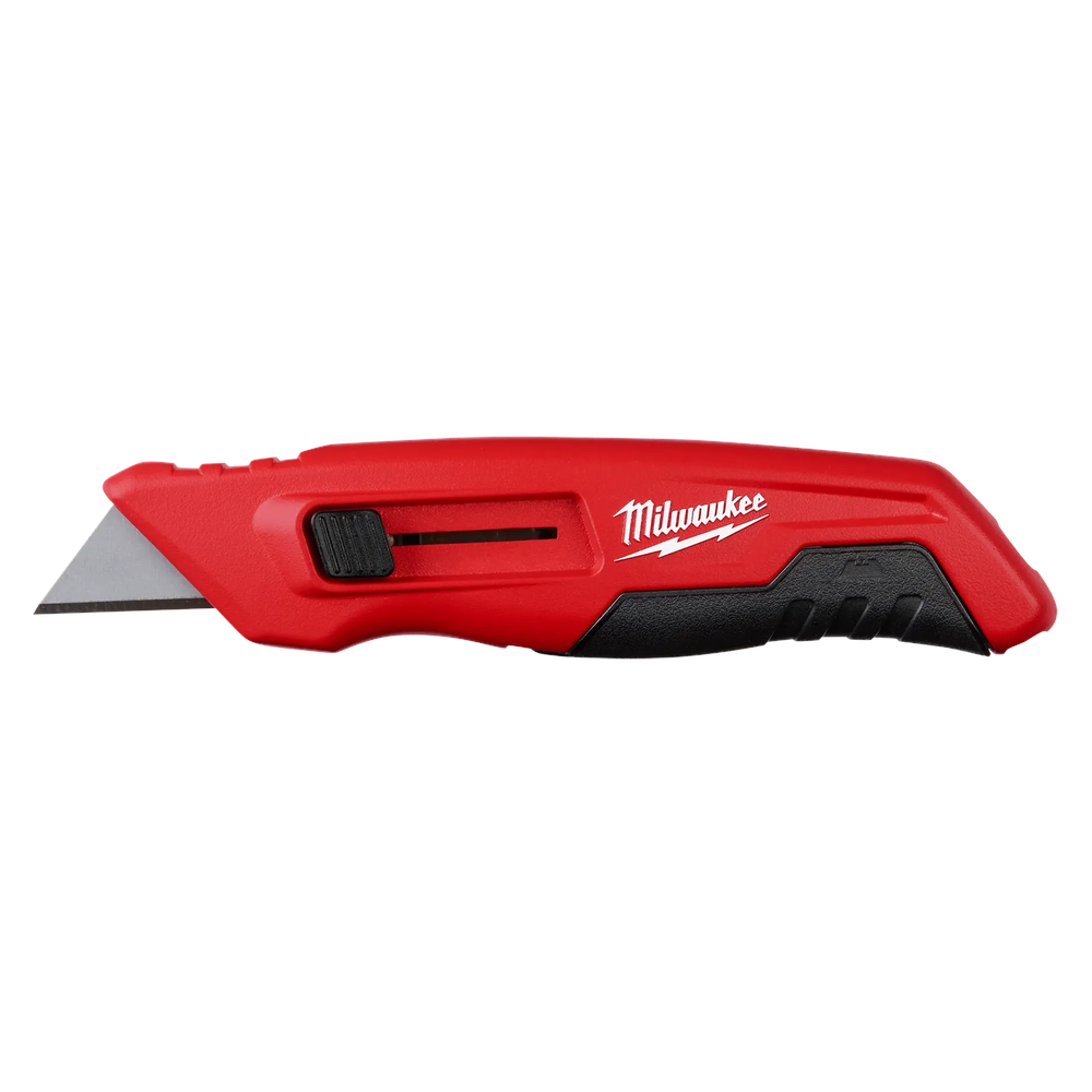 The MILWAUKEE Side Slide Utility Knife is engineered to provide maximum control and safety on the job site by featuring a slide button on the side to reduce accidental blade activation and retraction. This ruggedized tool is built with a durable full metal body designed to withstand heavy-duty use and impacts in demanding environments. Users benefit from quick, tool-free blade changes and integrated onboard storage that safely houses up to five extra blades for continuous productivity.