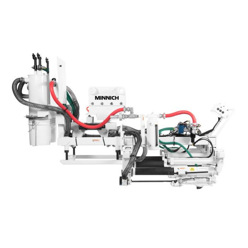 The Minnich A-5SS is a heavy-duty, five-gang machine-mounted pneumatic drill designed for high-production horizontal drilling on large-scale concrete projects. Specifically engineered to be mounted on carriers such as backhoes or excavators, this unit allows for the simultaneous drilling of five holes, significantly increasing job site efficiency. It is the five-drill equivalent of the A-2SS model, offering the same robust reliability and precision for dowel pin applications.