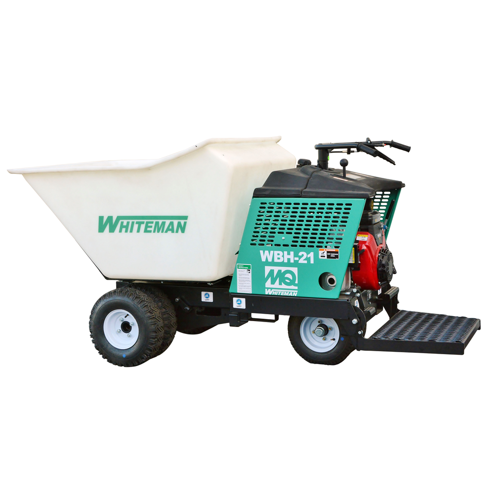 The WBH-21EFP is a large-capacity power buggy optimized for applications where gasoline exhaust is a concern. Powered by a clean-burning propane Vanguard engine, it delivers 18 HP while providing the massive 21 cubic foot capacity needed for major pours.