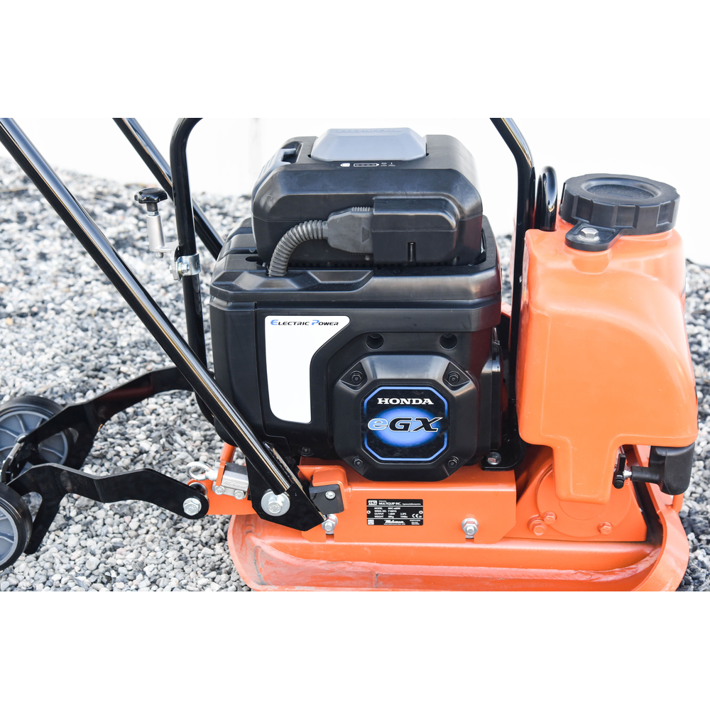 The MVCE64VBW is an emissions-free, battery-powered plate compactor ideal for indoor work and trenches. It features a Honda electric motor and an integrated water tank, providing the performance of a gasoline unit without the fumes.