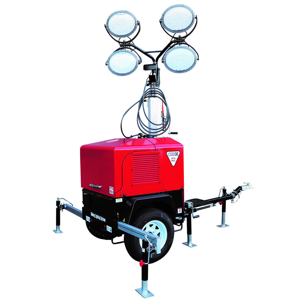 The GBX12SK is a mobile, diesel-powered light tower featuring four 300W high-efficiency LED spot lamps for superior projection lighting. This Tier 4 Final compliant unit is designed for long-running, dependable performance on large-scale construction and industrial job sites.