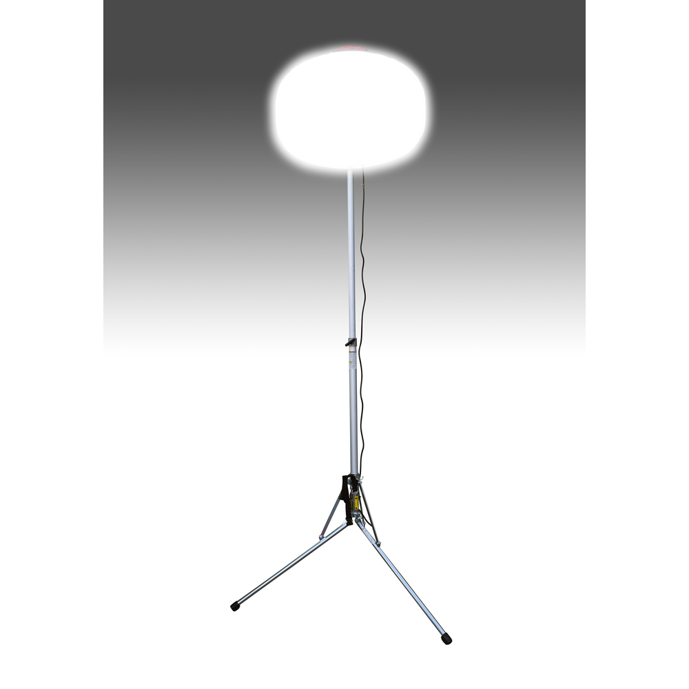 The Multiquip GB12BW is a portable lighting system designed for construction, emergency response, and outdoor work sites. It features a durable tripod stand with a 400-watt metal halide light head that provides bright, wide-area illumination. The system includes a weather-resistant light balloon diffuser that creates soft, glare-free lighting while protecting the bulb from impacts and environmental elements. This unit is engineered for easy setup, transport, and reliable performance in demanding conditions.