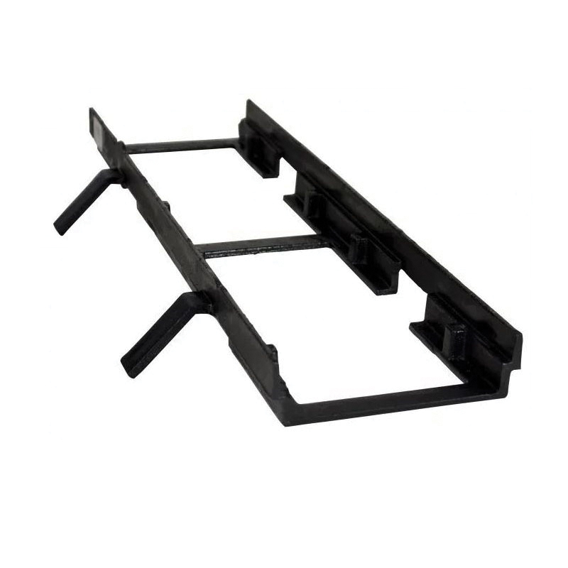 Add support to the Dura Slope® Channel Drain system to handle heavier traffic loads by installing the ductile iron Dura Slope Channel Drain Frame. The rugged frame sits on top of the channel drain and accommodates the standard iron or decorative iron drain grate on top. Provides NDS Class D load rating (up to 575 PSI) when installed properly; recommended for use with pneumatic tire traffic such as fork lifts and other heavy-duty hard tire equipment at speeds less than 20 mph; H-20 rated. The iron frame is painted black to inhibit rust and will form a protective iron-oxide patina over time
