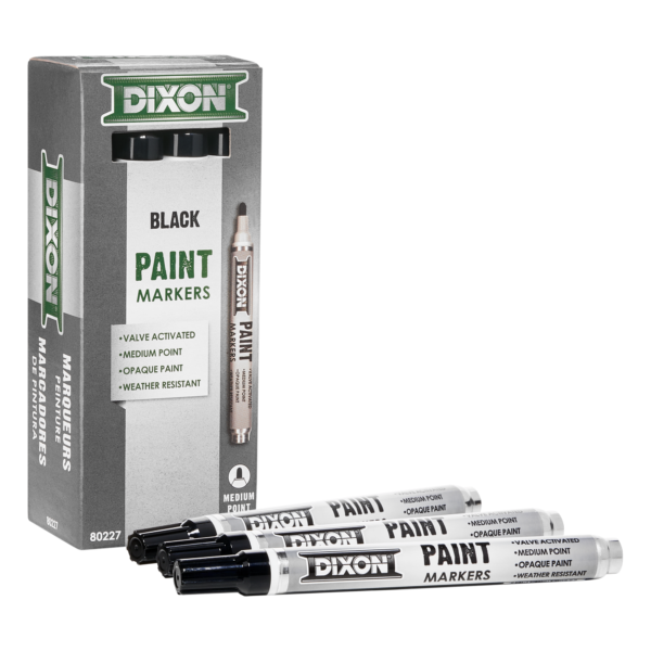 Dixon Paint Markers produce permanent, opaque colors on most surfaces including metal, wood, glass, stone, plastic, leather, vinyl, textiles, ceramics, cement, paper and rubber. These oil-based markers maintain color intensity regardless of the surface to which they are applied. The durable color is lightfast, waterproof and weatherproof. The special valve-action tip prevents dry-out. Dixon Paint Markers feature a sturdy metal barrel and are made in U.S.A.