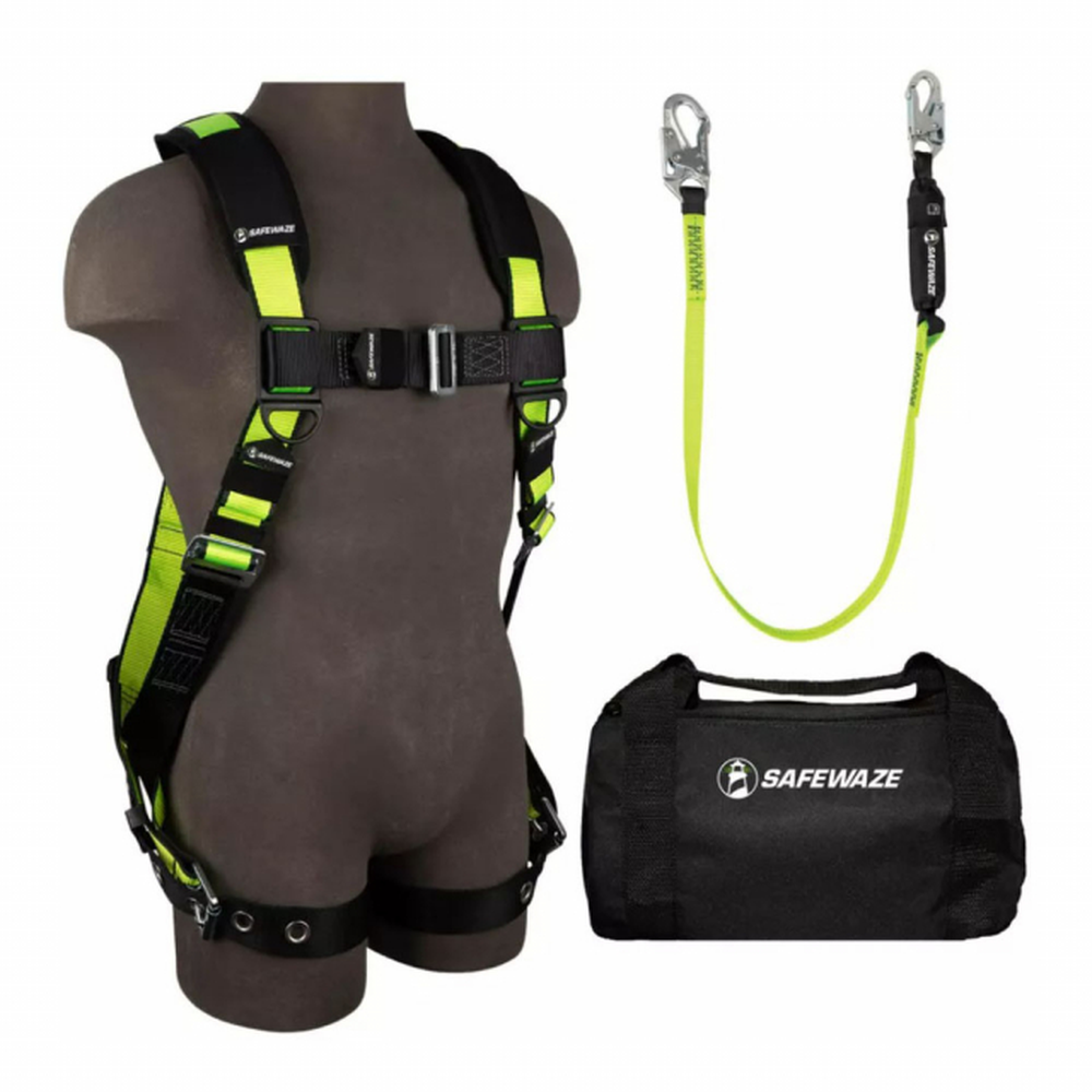 The Safewaze FS141-S/M PRO Bag Combo provides a professional-grade, all-in-one solution for jobsite fall protection compliance. This kit conveniently bundles the high-performance FS185 PRO harness with an energy-absorbing lanyard and a heavy-duty storage bag, ensuring workers stay safe and mobile. Ideal for construction and industrial maintenance, these components are engineered for durability and meet rigorous safety standards for all-day reliability.