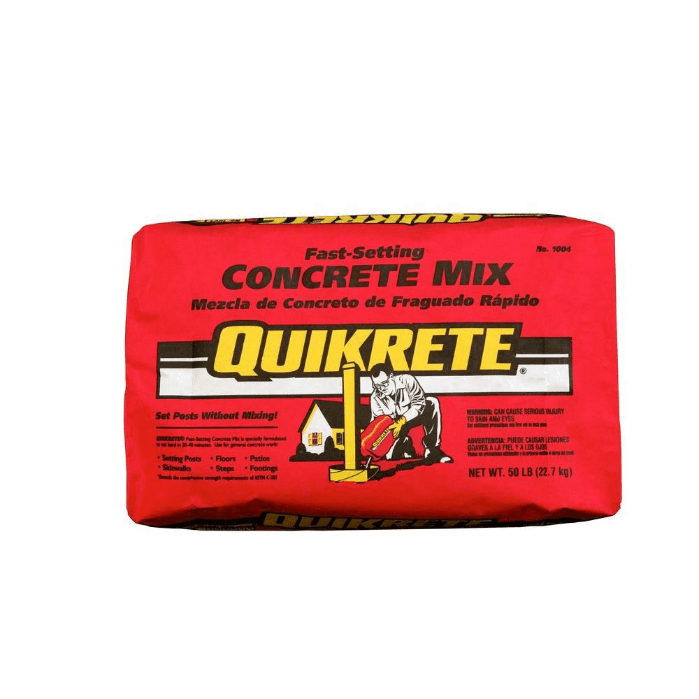 QUIKRETE® Fast Setting Concrete Mix is is a special blend of fast-setting cements, sand and gravel designed to set hard in approx. 20 to 40 minutes. Sets posts without mixing. Pour dry mix into hole and soak with water. A general purpose concrete used for setting posts, sleeves and anchors, for pouring slabs 2” (51 mm) or thicker, and for other applications where a fast-setting concrete is desirable.