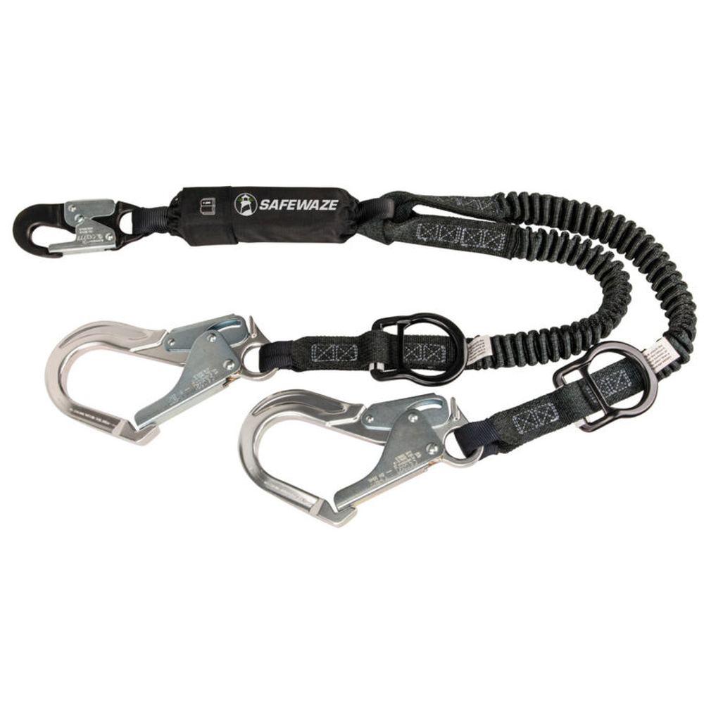 The Safewaze FS88761-FF-ALU is a high-performance PRO 6' stretch energy absorbing lanyard engineered for 12' free fall applications. Its dual-leg design ensures 100% tie-off for continuous fall protection, while the elasticized webbing stretches from 4 to 6 feet to significantly reduce tripping hazards and snagging. Featuring lightweight aluminum hardware and integrated rescue rings, this lanyard provides superior mobility and safety for tower workers and other personnel operating in high-risk environments.