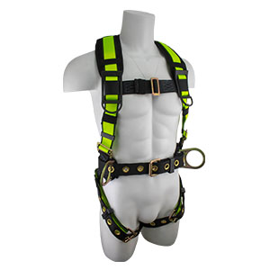 The SafeWaze Pro Construction Fall Protection Harness has all the features needed for a tough day on the job including comfort shoulder pads, spring loaded adjustment buckles, grommet leg straps and side positioning D-rings. It also comes with a fixed back pad designed for tool bags.