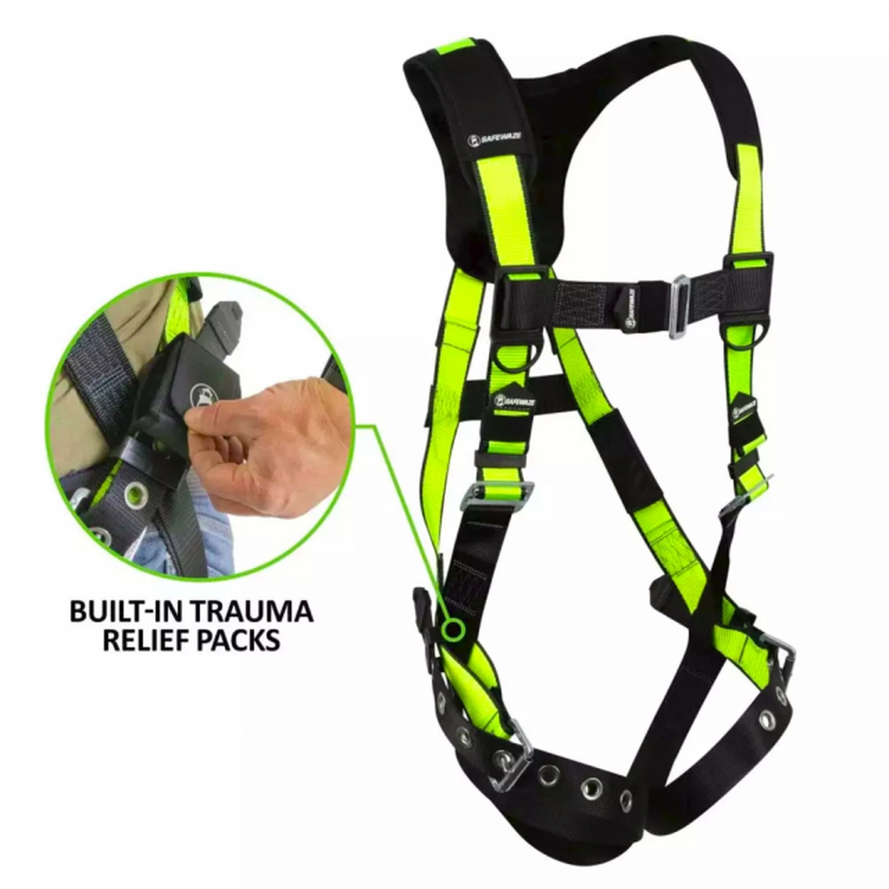 The Safewaze PRO Full Body Harness is a dependable workhorse designed for professional fall protection in construction and industrial environments. This harness features high-visibility, abrasion-resistant green webbing and ergonomically designed shoulder padding for all-day comfort. It provides a reliable and secure solution for workers at height, combining durable steel components with a lightweight, functional design.