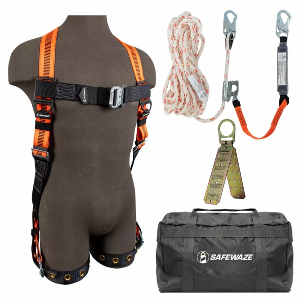 The Safewaze 021-3216 V-LINE Bag Roof Kit is an essential, all-in-one personal fall arrest system specifically configured for residential and commercial roofing applications. This pre-packaged kit ensures component compatibility and quick compliance for workers operating on pitched surfaces, providing immediate safety right out of the box. The collection is conveniently stored in a heavy-duty carry bag, making it an ideal choice for contractors who require portability and reliable fall protection.