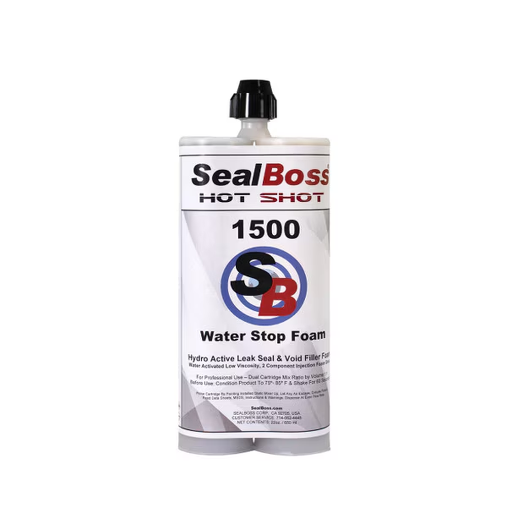 Seal Boss 1500 is a hydrophobic, water activated water cut-off grout and foam seal grout based on a phthalate free, MDI polyurethane. It is a 100% solvent-free, 100% solids two-component formulation mixed at a 1:1 ratio by volume.