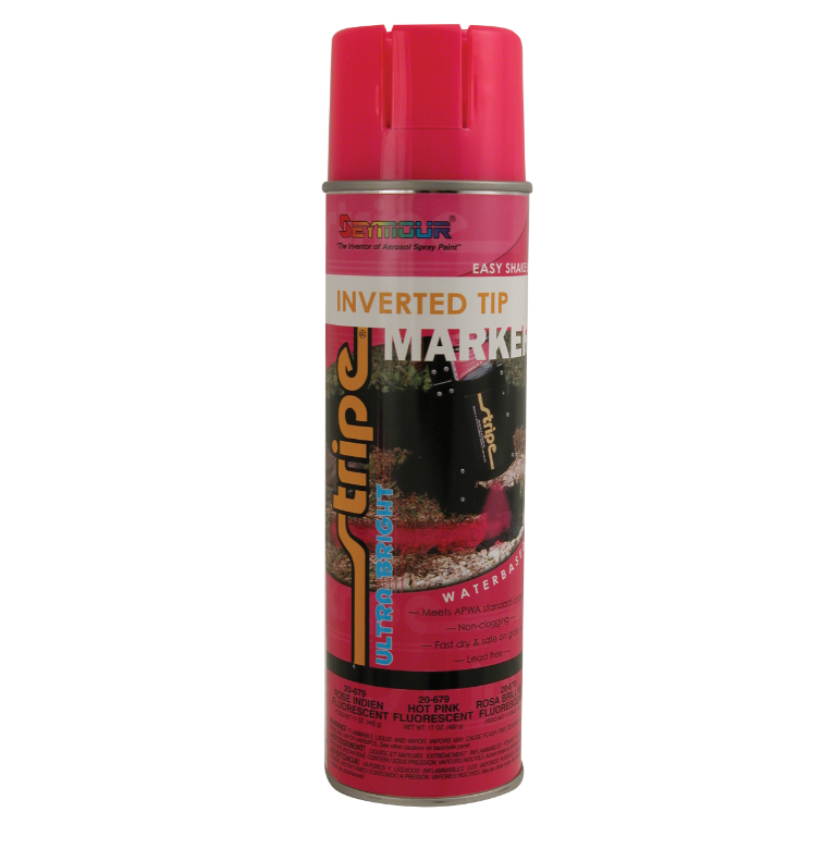 A heavy-duty, water-base industrial marker. The no-clog, fast drying formula is available in a full range of construction and APWA colors. Both come with the Seymour converta-cap, a specially designed protective cover that does not need to be removed before using. This provides the user with a convenient marking tool without the worry of accidental spraying.