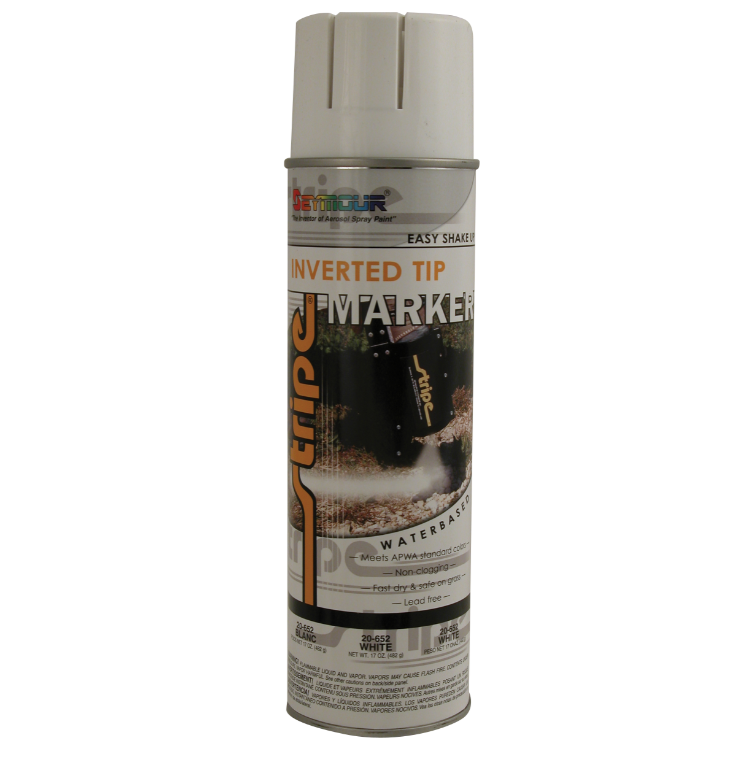 A heavy-duty, water-base industrial marker. The no-clog, fast drying formula is available in a full range of construction and APWA colors. Both come with the Seymour converta-cap, a specially designed protective cover that does not need to be removed before using. This provides the user with a convenient marking tool without the worry of accidental spraying.