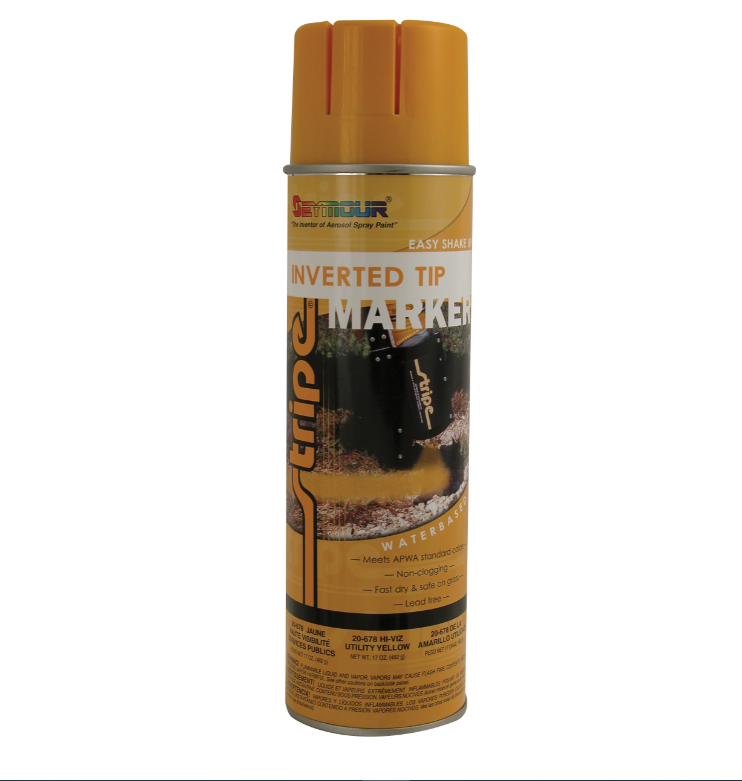 A heavy-duty, water-base industrial marker. The no-clog, fast drying formula is available in a full range of construction and APWA colors. Both come with the Seymour converta-cap, a specially designed protective cover that does not need to be removed before using. This provides the user with a convenient marking tool without the worry of accidental spraying.