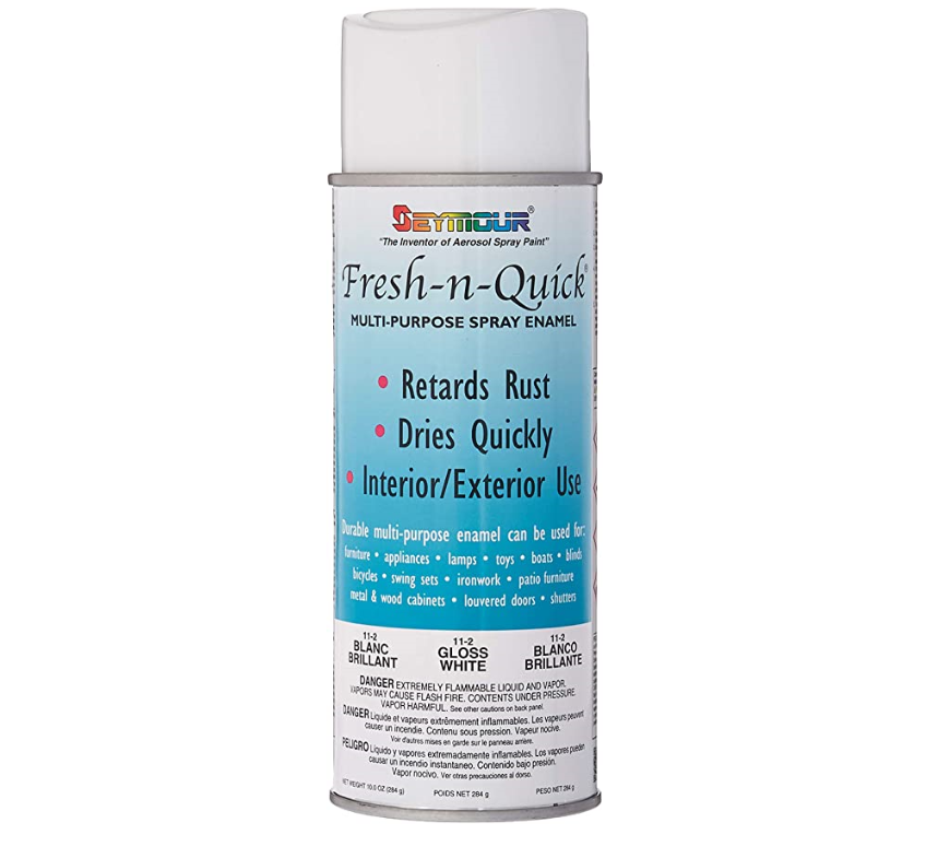A high quality spray paint available in a wide range of popular colors and economically priced. Black and white available in a gloss or a flat finish. It covers well, dries fast, and holds up well outdoors. Bare or rusted surfaces should be cleaned and primed with Fresh-N-Quick Gray Primer, #11-15.