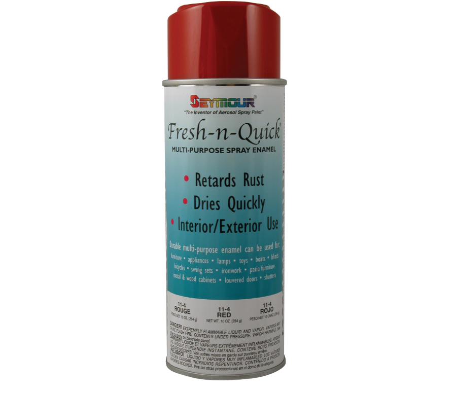 A high quality spray paint available in a wide range of popular colors and economically priced. Black and white available in a gloss or a flat finish. It covers well, dries fast, and holds up well outdoors. Bare or rusted surfaces should be cleaned and primed with Fresh-N-Quick Gray Primer, #11-15.
