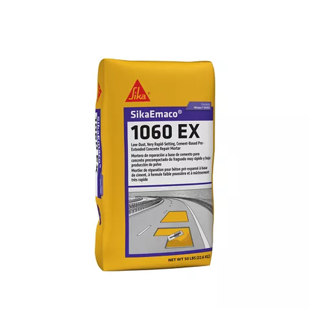 Low-dust, very rapid-setting cement-based pre-extended concrete repair mortar for horizontal surfaces. Designed for high early strength gain in applications from 1.5 inch to full depth.