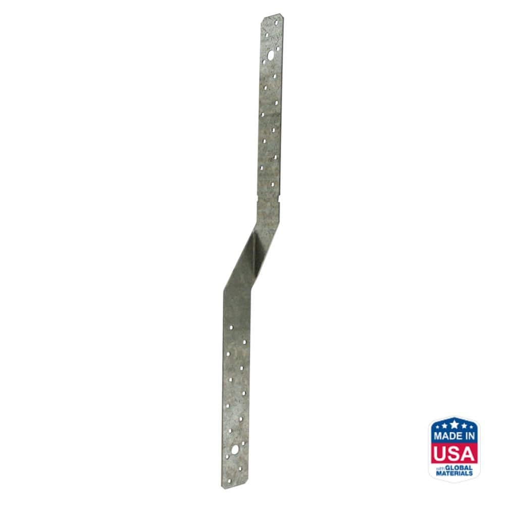 The Simpson Strong-Tie MTS18 is a high-performance 16-gauge galvanized steel strap engineered to provide a secure tension connection between structural members. Ideal for resisting moderate uplift loads at the rafter or heel of a truss, it enhances the overall stability and safety of wood-framed structures. The strap's unique 2-inch bend section is specifically designed to minimize joint interference, ensuring a fast and hassle-free installation. This economical solution provides long-lasting durability for both new construction and retrofitting projects.