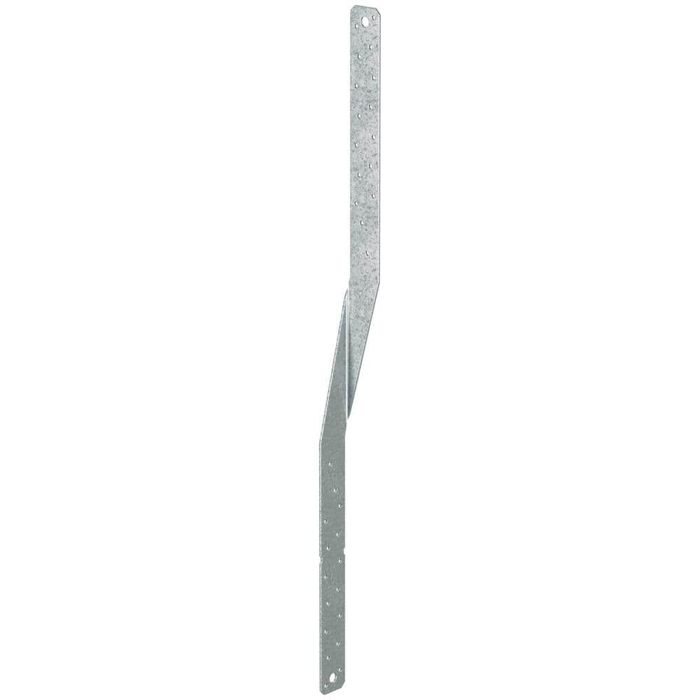 The Simpson Strong-Tie HTS24 is a 24-inch heavy-duty twist strap designed to provide a high-strength tension connection between two wood members. It is specifically engineered to resist heavy uplift loads at the rafter or heel of a truss, making it an essential component for structural integrity in wind or seismic zones. The strap features a small bend section that minimizes interference at transition points, ensuring a professional and efficient installation.