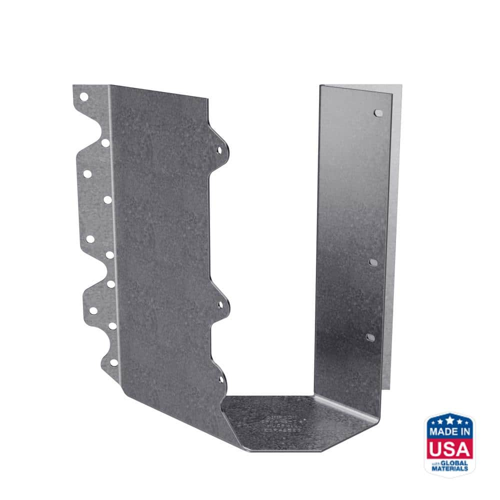 The Simpson Strong-Tie HSUR410 is a heavy-duty, 45-degree right-skewed joist hanger designed to support large lumber members or double I-joists in wood construction. Its robust U-shaped design encapsulates the top flange of the joist, providing superior stability and ensuring that no web stiffeners are required for standard installations. This hanger is ideal for angled wood-to-wood connections in decks, floors, and roof framing, delivering high load-bearing capacity and a secure fit. The G90 galvanized finish offers essential corrosion resistance for long-term structural reliability.