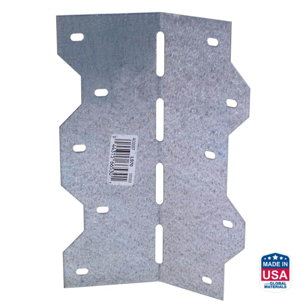 The Simpson Strong-Tie LS70 is a versatile 6-3/8 inch reinforcing angle designed for a wide range of construction and DIY projects. Its field-adjustable nature allows for angles from 0 to 135 degrees, making it ideal for connecting members that intersect at various angles. This reinforcing angle is constructed from durable 18-gauge steel, ensuring reliability for both household repairs and more demanding structural applications. Available with different finishes, it provides corrosion resistance suitable for various environments.