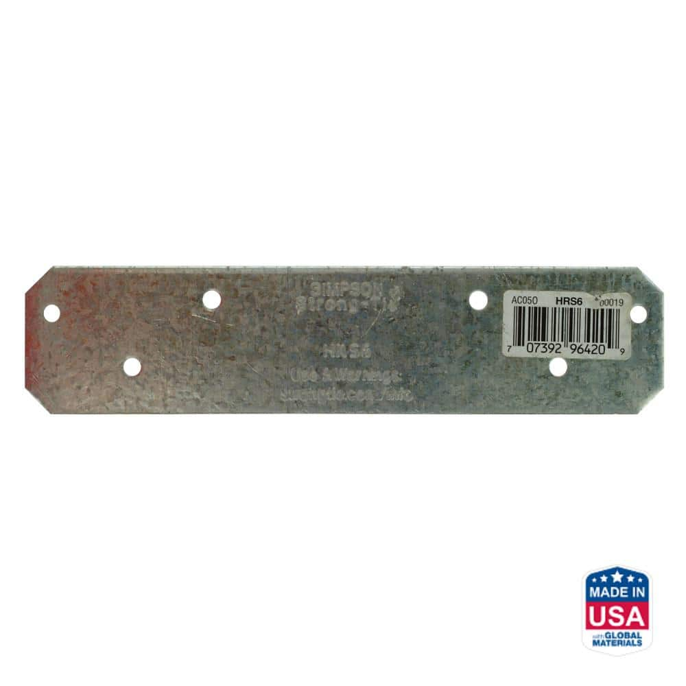 The Simpson Strong-Tie HRS6 is a load-rated, heavy-duty strap tie designed to effectively resist tension forces between two wood members. Precut for convenience, this 6-inch strap is ideal for reinforcing joints where top or bottom plates are cut, at wall intersections, or for use as ridge ties. Its robust 12-gauge steel construction ensures a high-strength connection suitable for both home repair and new construction projects.