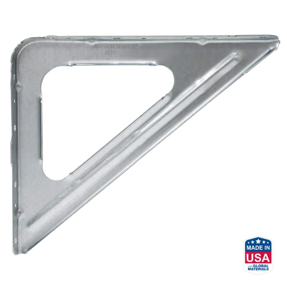 The Simpson Strong-Tie SBV Shelf Bracket Vertical is designed to reinforce the connection between a vertical wall and a horizontal surface, providing essential structural support and functionality for various applications such as shelving, counters, and window ledges. This economical bracket offers versatility with its reversible design, capable of supporting shelves with nominal depths of 10 or 12 inches, and accommodating any thickness. Its construction ensures durability and reliable performance for your projects.