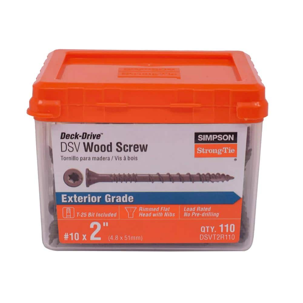 The Simpson Strong-Tie Deck-Drive DSV Wood Screw is a powerful fastening solution engineered for preservative-treated decking applications. It features a fast-start tip and underhead nibs for effortless countersinking, ensuring a clean, flush finish. The optimized shank design accommodates the natural swelling and shrinkage of lumber, making it ideal for outdoor projects and dimensional lumber. This screw is also suitable for fastening fascia and trim.