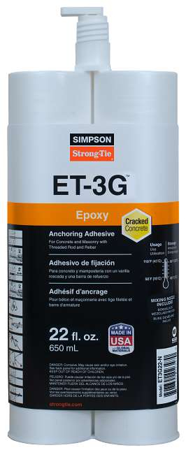 ET-3G is a two-component, high-solids, epoxy-based system ideal for general anchoring of threaded rod and rebar into concrete (cracked and uncracked) and masonry (cracked and uncracked).