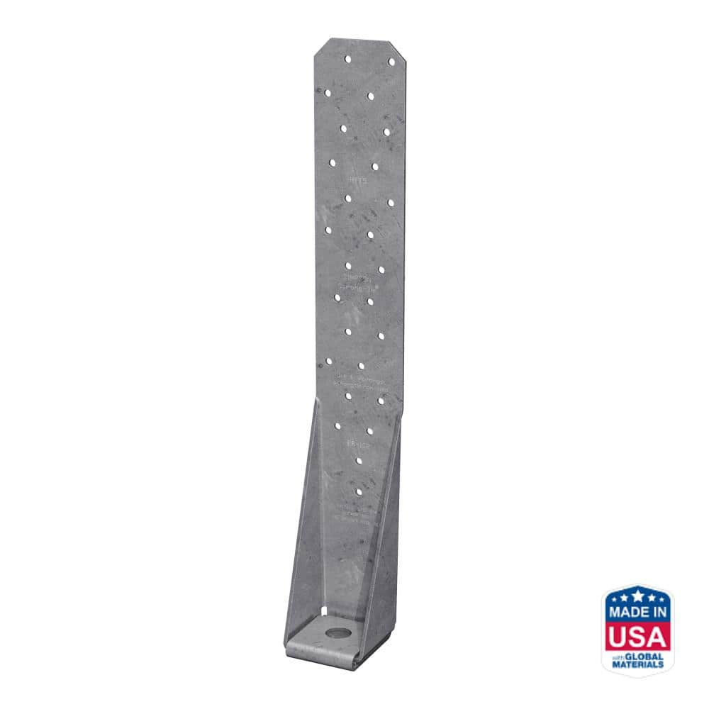 The Simpson Strong-Tie HTT5HDG Heavy Tension Tie is a robust solution for resisting high tension loads in wood-to-concrete connections, ideal for both residential and light-frame commercial buildings. It is designed to resist medium tension loads when fastened with #10 screws and provides high-strength, post-pour, concrete-to-steel connections. This single-piece formed tie features a four-ply formed seat and does not require washers, offering an optimized design for enhanced strength and reduced deflection. Its hot-dip galvanization provides extra corrosion resistance for exterior applications.