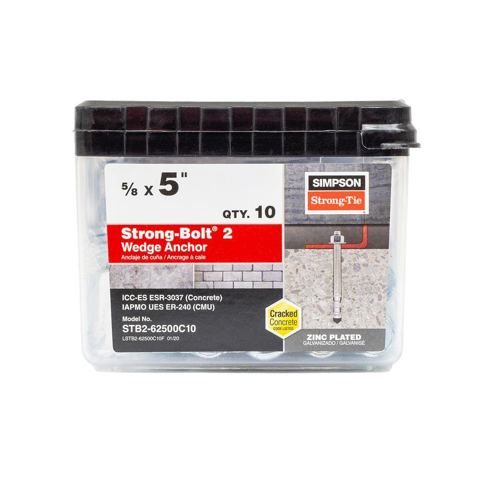 10 x 5/8 inch x 5 inch Strong-Bolt 2 Wedge Anchors (pack size may vary)