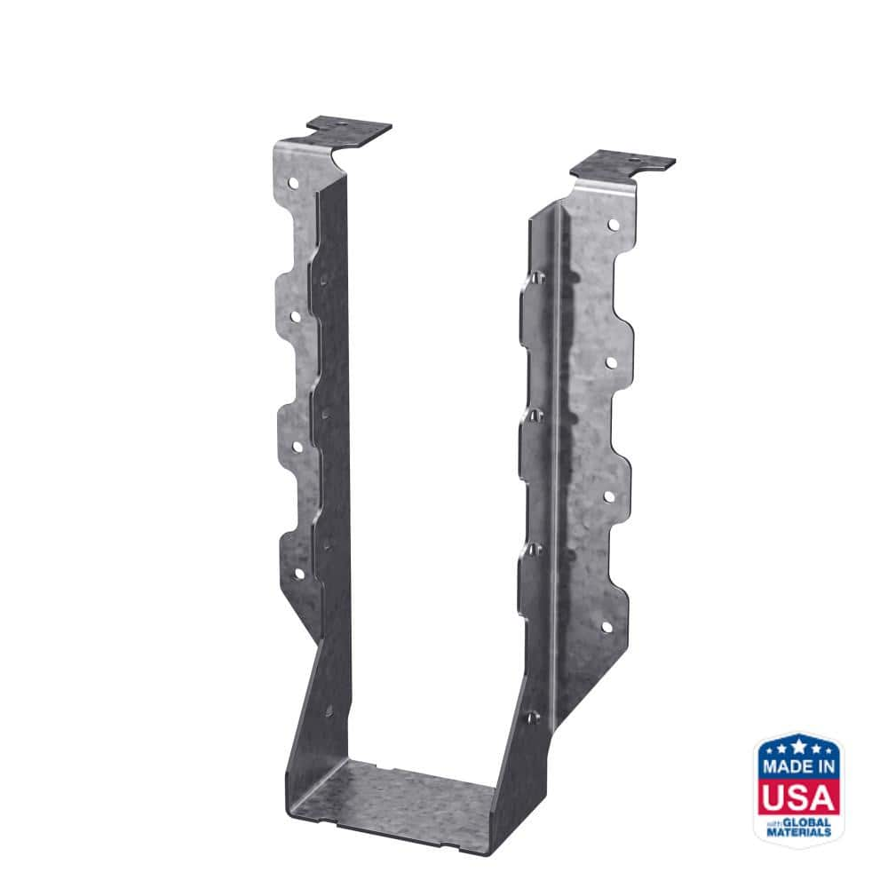 The Simpson Strong-Tie HUS210-2TF is a heavy-duty, hybrid hanger from the HUSTF series designed for supporting double 2x10 lumber beams. It incorporates a top-flange design combined with double-shear nailing technology, which distributes the joist load through two points on each nail for significantly enhanced strength. This hanger is engineered to provide superior stability for demanding wood-to-wood structural applications, including floor and roof framing.