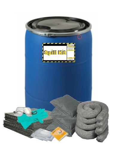 55 Gallon - Our economy kits are housed in recon blue poly drums with lever lock lids for cost savings when high visibility is not needed.