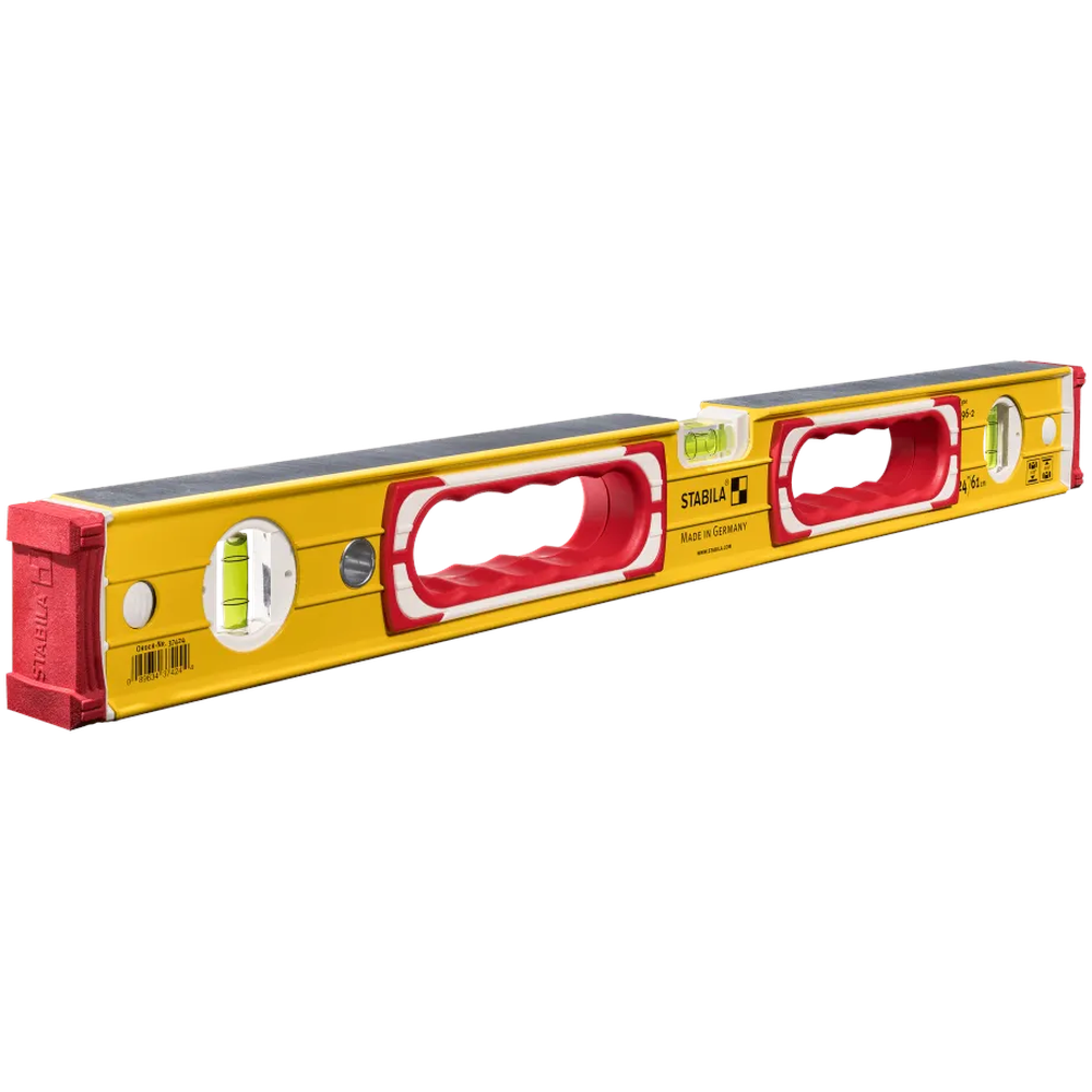 The Stabila Type 196 heavy-duty level is the professional standard for framing, masonry, and finish carpentry applications. This 48-inch level features an ultra-rigid rectangular aluminum profile with reinforcing ribs to ensure high stability and a secure hold. With its epoxy-locked vial system and shock-absorbing design, this tool provides unparalleled accuracy and durability for the toughest jobsites.