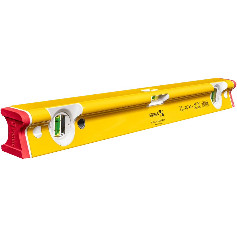 The Stabila 72 inch R Beam Level is a professional-grade tool engineered to withstand the most demanding jobsite conditions with its revolutionary five-chamber R-profile. This level features an extra-wide measuring surface that provides exceptional stability and prevents tipping during critical tasks like cabinet installation. Designed for multi-functionality, it offers three precision edges for uninterrupted marking and scoring while doubling as a continuous ergonomic handrail. Its torsion-resistant frame is over twice as strong as standard heavy-duty levels, ensuring lifetime accuracy and reliability.