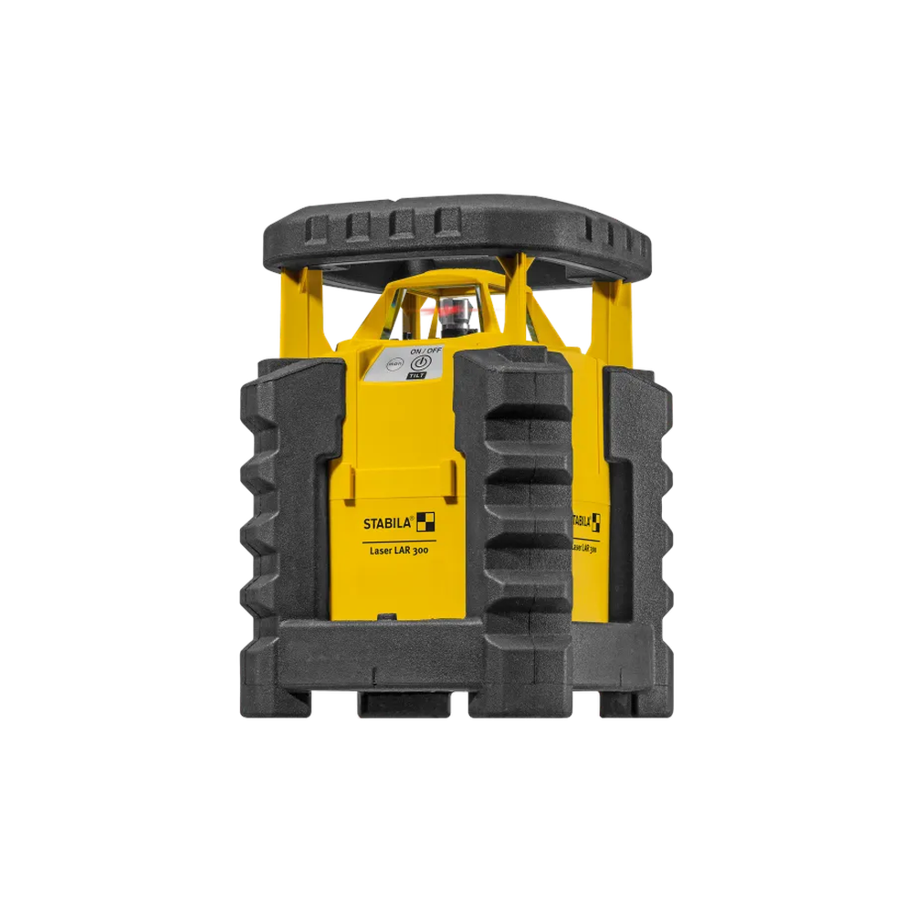The Stabila LAR 300 is a robust, fully automatic motor-driven rotary laser designed for precise horizontal leveling in demanding outdoor applications. This German-engineered tool features the innovative STABILA PROTECTOR system, which provides extreme durability by allowing the unit to withstand drops from tripods at heights up to 6 feet. When paired with the REC 300 Digital receiver, it delivers an impressive working diameter of up to 2600 feet with exceptional leveling accuracy. Its IP 65 rating ensures complete protection against dust and water, making it a reliable partner for any job site condition.