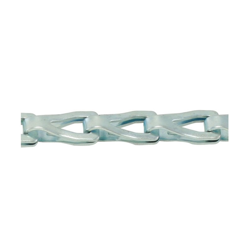 A stamped flat-link chain with zinc finish, designed for counter-balanced double-hung window sashes, arc lamps, and other flat-chain applications operating over pulleys. This steel sash chain comes in size 35, packaged on a reel with 100 feet of length.