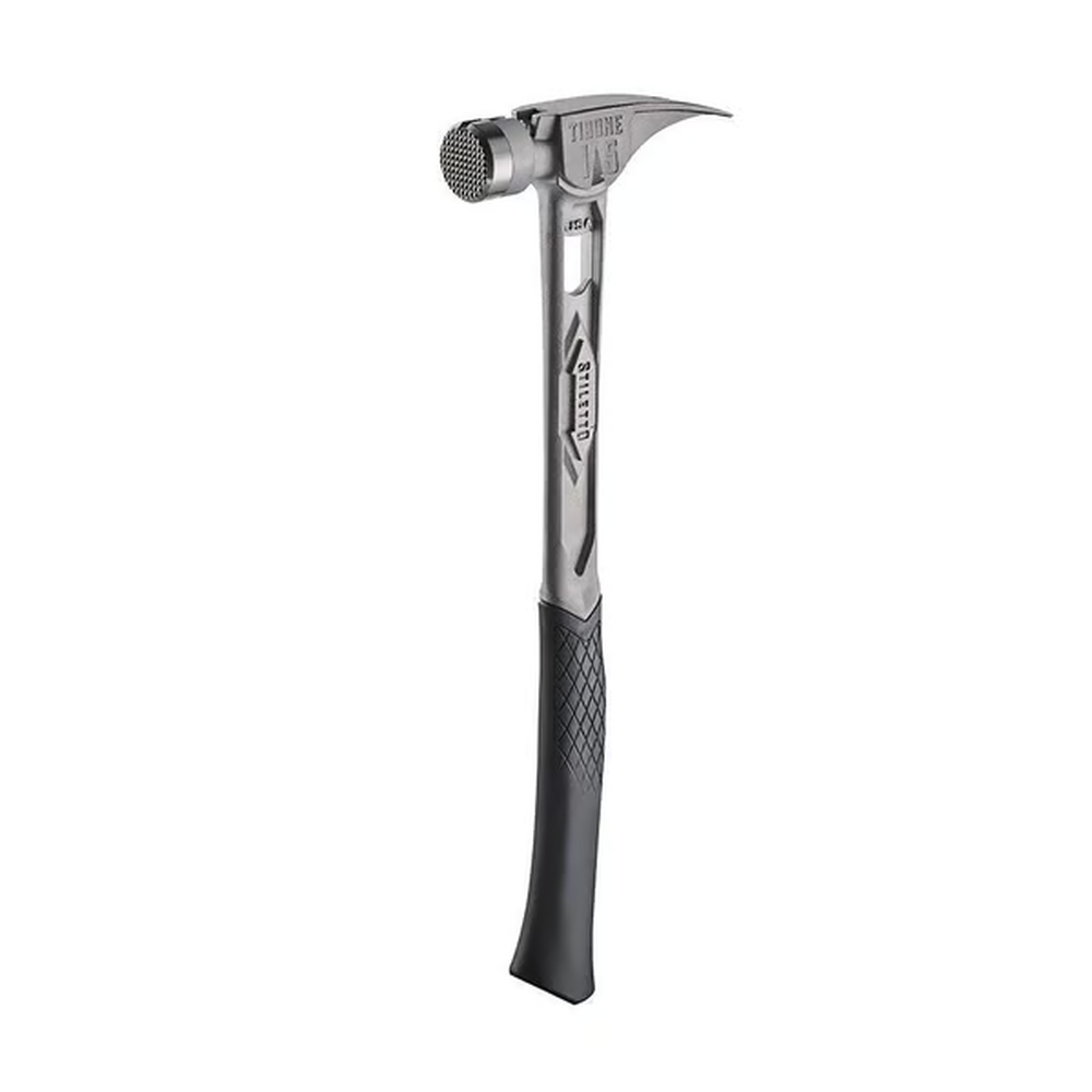 The Stiletto TIB15MC-CBL TIBONE is a premium, limited-edition 15oz titanium framing hammer featuring a durable black casting finish. As part of the Stiletto line (a Milwaukee Tool brand), this professional-grade hammer is engineered to deliver the striking power of steel while weighing 45% less to significantly reduce arm fatigue and repetitive stress injuries. This model features a milled face for superior nail-driving control and is designed for the high-demand needs of framing and construction professionals.