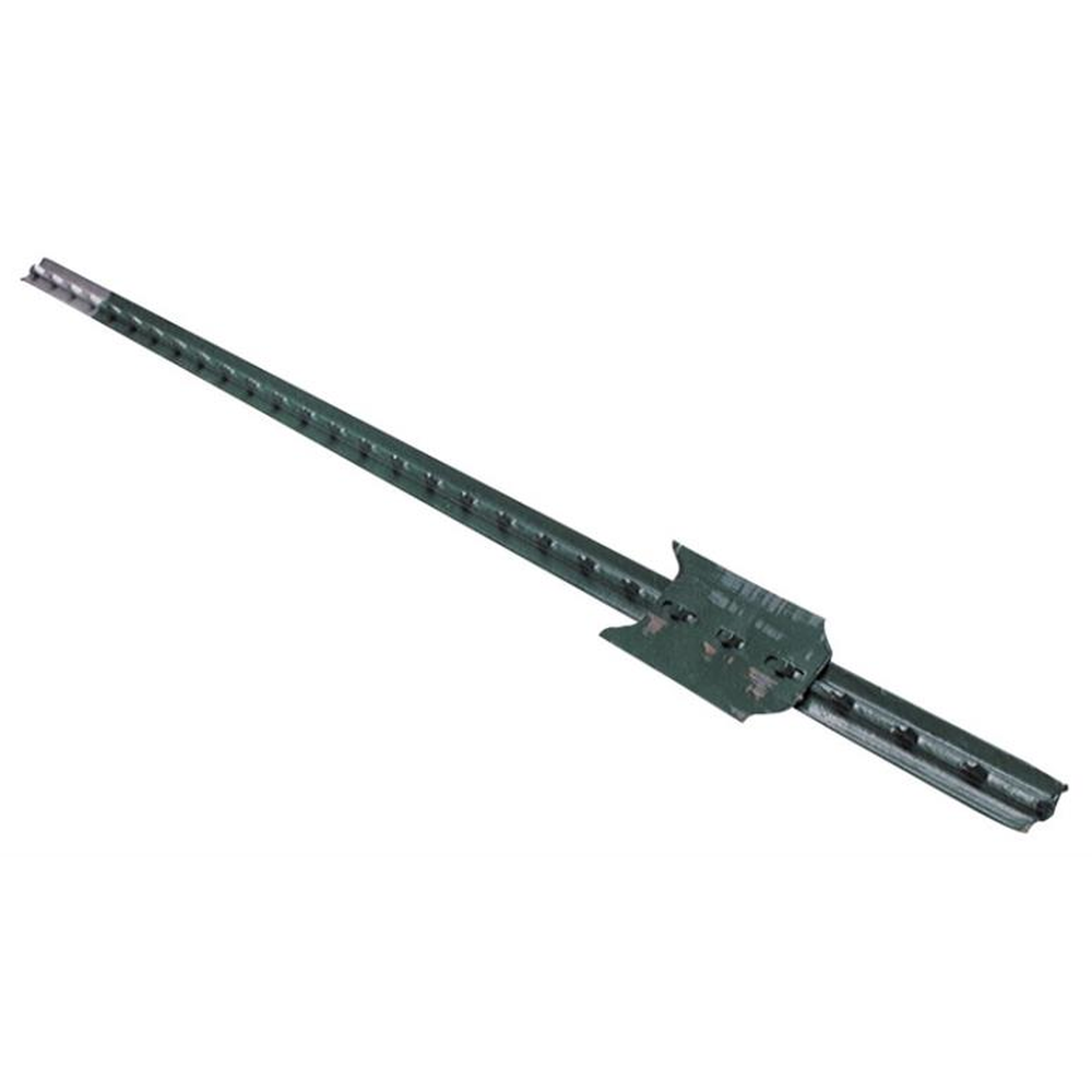 A 6-foot steel T-post designed for fencing and erosion control applications, featuring a durable green powder-coated finish and anchor plate for secure ground installation.