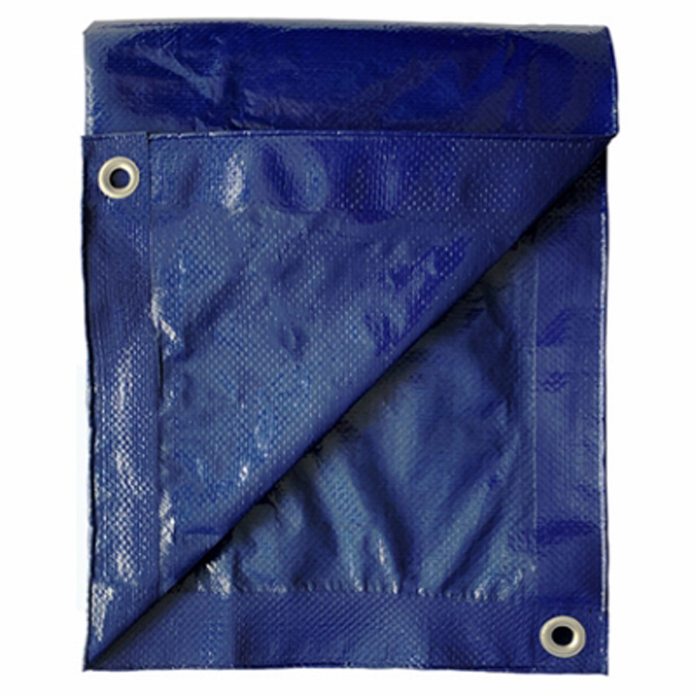 TruGuard, 10' x 20', blue, polyethylene storage tarp cover, 105 GSM, 5 mil, medium duty, approximately 200 sq ft coverage, rolled aluminum grommets every 3', rope hemmed, tear resistant, water repellent, UV stabilized, mildew proof, ideal as temporary covers for furniture & equipment outdoors, not recommended for use on automobiles.