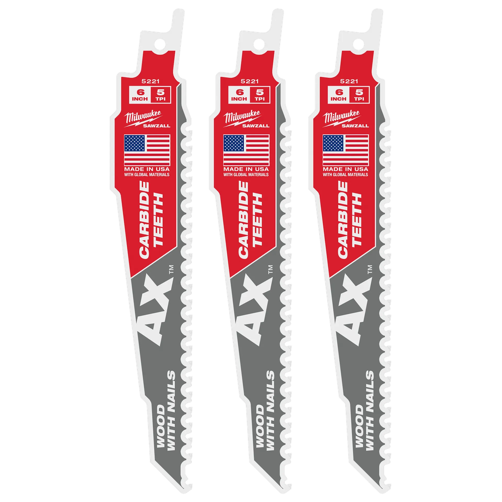 (3) 6' 5 TPI THE AX with Carbide Teeth SAWZALL Blades
