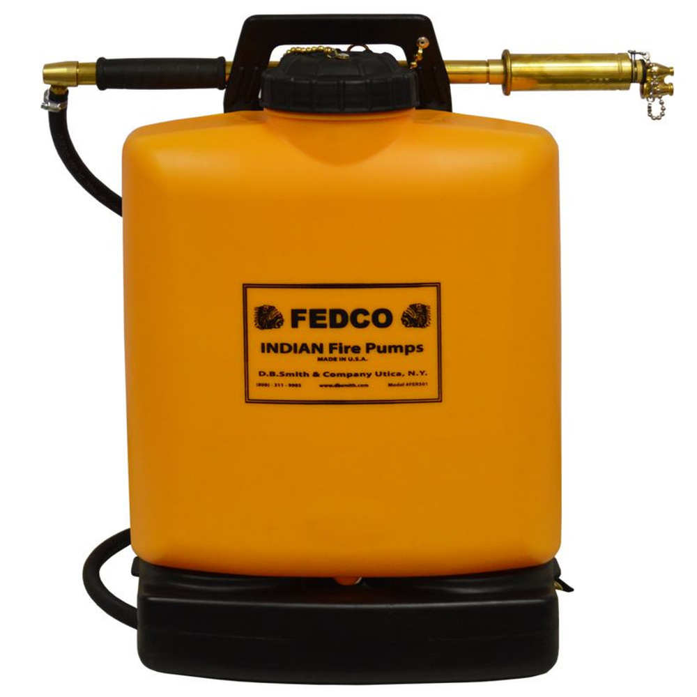 The Indian Fire Pump is a portable fire suppression system featuring a 5-gallon polyethylene tank designed for durability and corrosion resistance. This manual pump system provides a reliable water source for emergency firefighting in remote areas, on farms, or at construction sites where conventional water supplies are unavailable. The unit includes a hand-operated pump mechanism that delivers a controlled stream of water to extinguish small fires effectively.