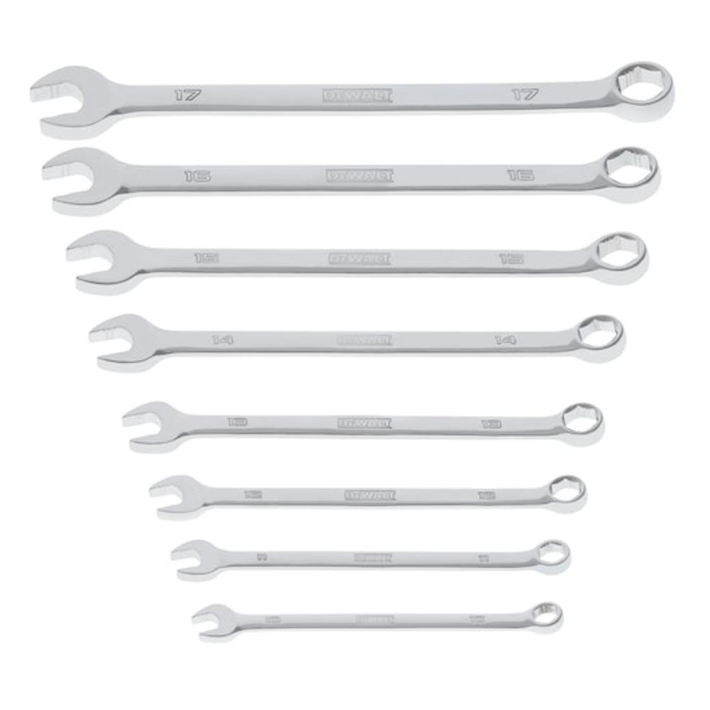 Conquer any challenge, from the workshop to the field. The DEWALT TOUGHSERIES 8-piece Metric Combination Wrench Set is engineered with PowerJaw technology, delivering an impressive 30% more torque on rounded fasteners*. Its 15-degree offset design ensures effortless access in confined spaces, while the long panel forging maximizes leverage for superior torque application. Housed in a stackable TOUGH BOX with a transparent lid for easy identification, this set also features a removable inner tray, perfect for integration with standard metal tool drawers.
